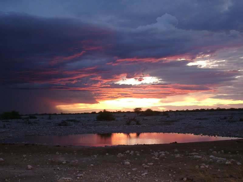 Dieselbe nachts beleuchtete Wasserstelle kurz nach dem Gewitter.