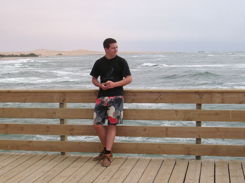 Hölzerner Pier von Swakopmund, 1904/1905 von der Eisenbahnbaukompanie erstellt, teilrenoviert. Der Atlantik ist hier wegen des Benguelastroms recht kalt, Pascal war trotzdem mehrfach drin.
